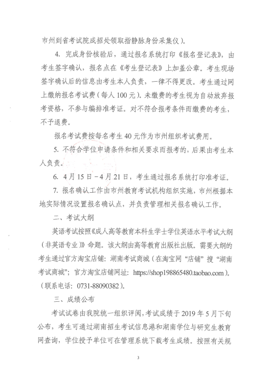 转发湖南省教育考试院《关于我省2019年上半年成人高等教育学士学位外语水平考试报名工作的通知》
